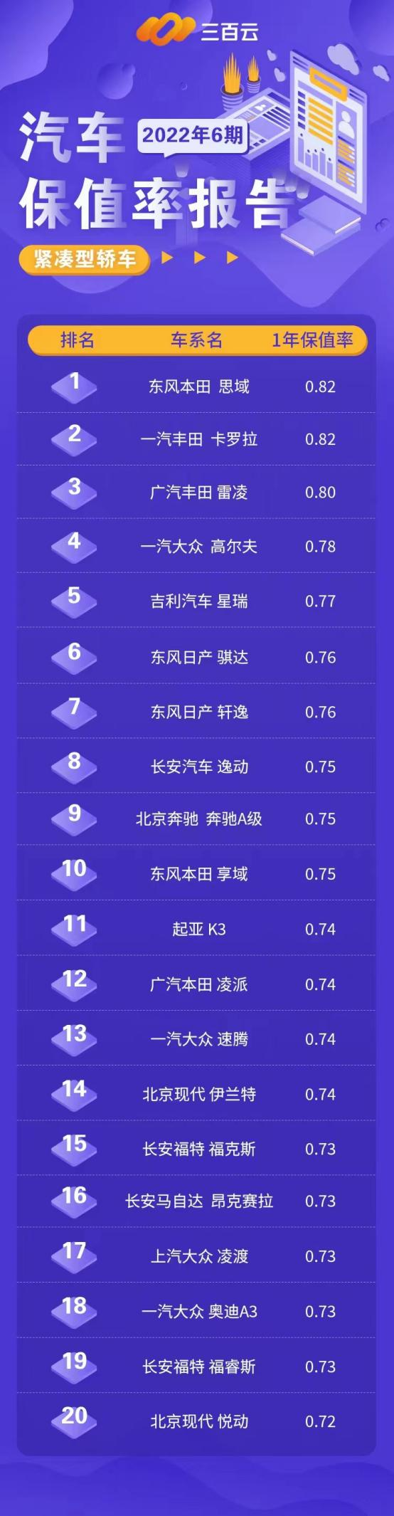 基于实际成交价,A级家轿的一年保值率排行究竟如何?