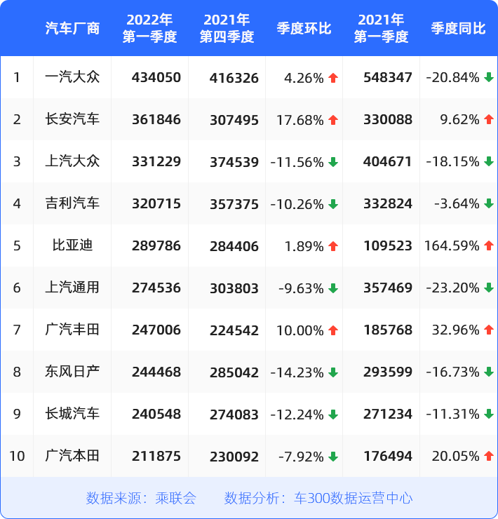 一季度车企销量榜单TOP10,过半车企同比出现下跌,但自主车企比亚迪,表现格外亮眼;在面临宏观经济下行、疫情散发、上游原材料涨价等不利因素影响下,比亚迪延续了快速增长的势头,销量超过28万辆,同比实现164.6%的迅猛增长,创下历史新高,市场占有率持续攀升。
