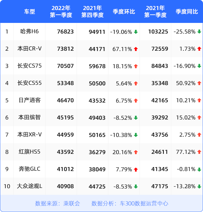 一季度,SUV市场表现相对较好,整体售出265万台,同比增长10%;销量榜内,过半车型销量表现好过去年同期。