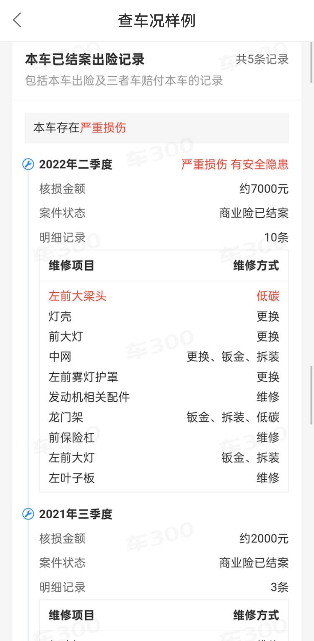 ● 核心优势:数据最权威,定损细节清晰(如更换了什么零件)