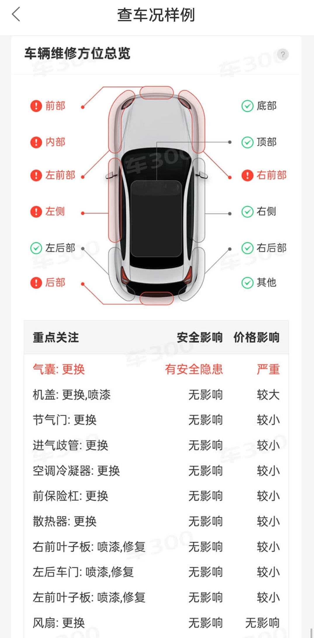 ● 清醒认知:如果前车主一直“裸奔”(只买交强险)或在路边摊保养,记录可能是一片空白。报告干净不代表车况完美,但报告有问题则车况必定存疑。
