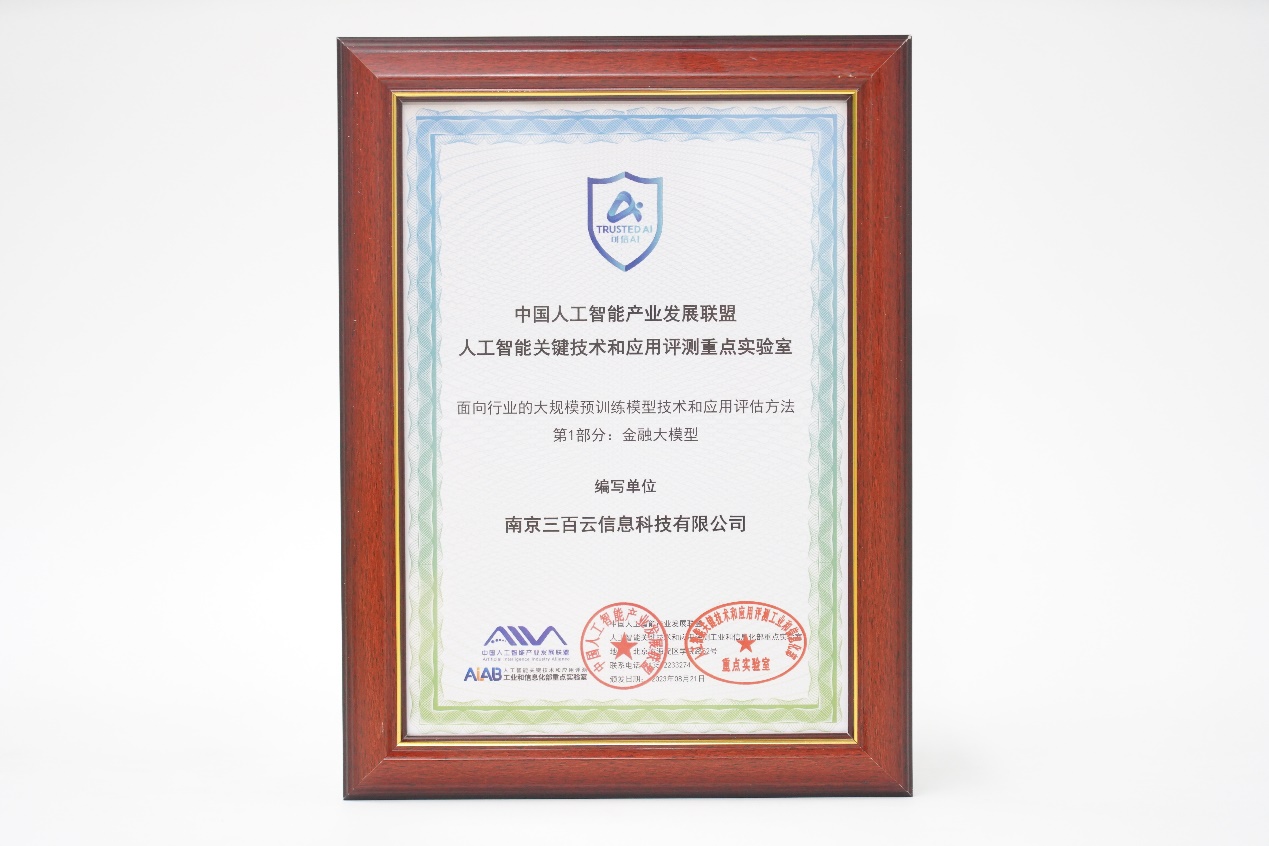 为助力金融行业智能化升级,中国信通院联合三百云在内的业内近40家企业共同编制《面向行业的大规模预训练模型技术和应用评估方法 第1部分:金融大模型》标准,对大模型在数据合规性、可追溯性、私有化部署、风险控制等方面提出了要求。聚焦汽车行业,三百云与中国信通院及其他产学研用各方紧密合作,编写制定国内首个汽车大模型标准参与编写制定了国内首个汽车大模型标准《面向行业的大规模预训练模型技术和应用评估方法 第4部分:汽车大模型》的制定工作,为行业的创新发展提供有力支撑。