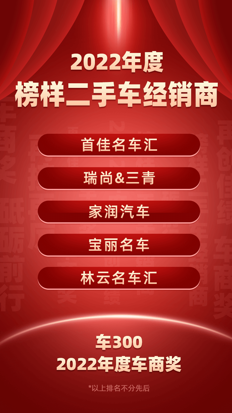 在榜单颁发之际,感谢所有车商朋友们对二手车流通做出的贡献,2023我们携手同行!