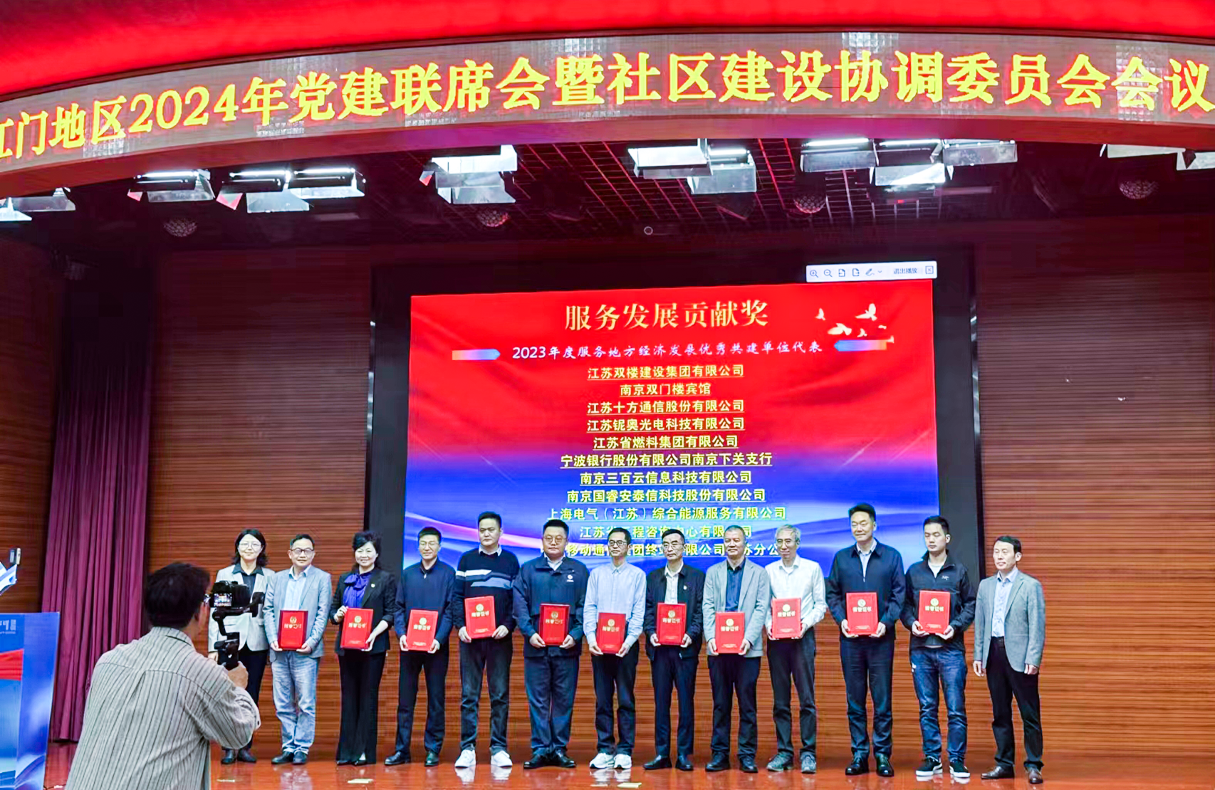 近日,挹江门地区2024年党建联席会暨社区建设协调委员会会议顺利召开,三百云被授予“服务地方经济发展”优秀共建单位荣誉称号。