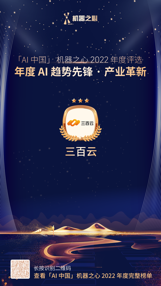 1月14日,作为目前国内人工智能界规模最大、评选最权威的年度奖项之一,「AI中国」机器之心2022年度评选正式揭榜,南京三百云信息科技有限公司(下称三百云)凭借多年来在技术领域的积累,入选2022 年度 AI 趋势先锋 · 产业革新榜单。