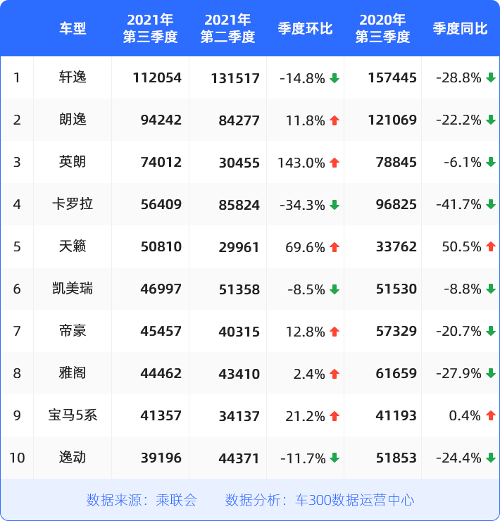 卡罗拉下滑显著,天籁表现可佳