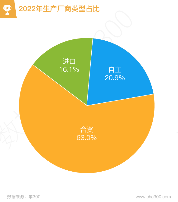 生产厂商类别分布中,合资车型占比为63%,相比去年下跌1个百分点;自主车型占比20.9%,相比去年增长1个百分点,自主品牌汽车技术的日益发展,提升了二手车在市场的认可度;进口车型交易量占比16.1%,与去年相近。