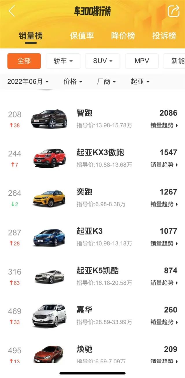 根据车 300 二手车 APP 销量排行榜的数据显示,起亚嘉华 6 月份的销量为 260 辆,这个数据相比原本的「假想敌」差距很大。