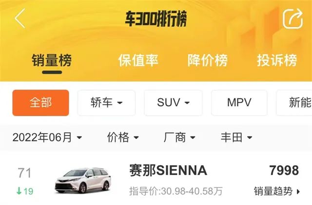 例如本田奥德赛 6 月卖出了 4847 辆,丰田赛那卖出了 7998 辆,别克 GL8更是取得了月销量 11358 辆的好成绩。