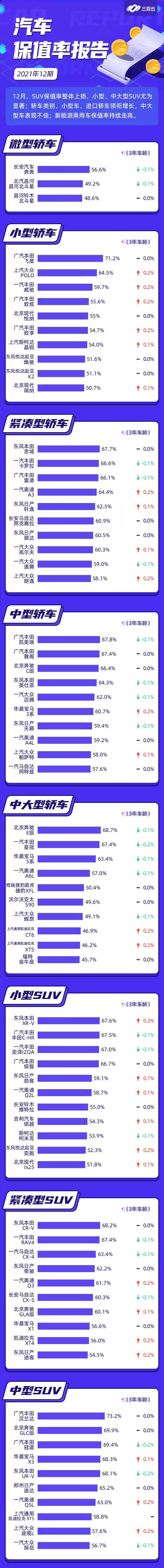 车300独家|2021年12月汽车保值率报告