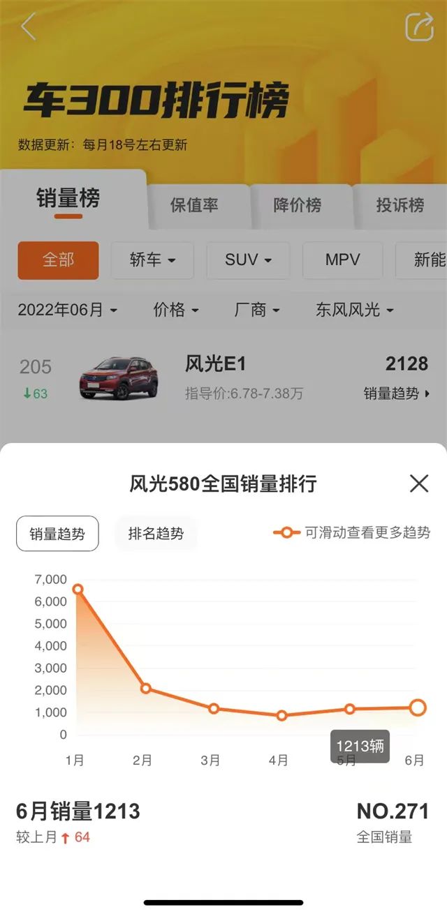 尽管全新风光 580 相比上一代车型进步巨大,在销售策略上也采取了「新老同堂」的方式,让老款车型继续发挥余热,但这一努力并没有体现在销量上。